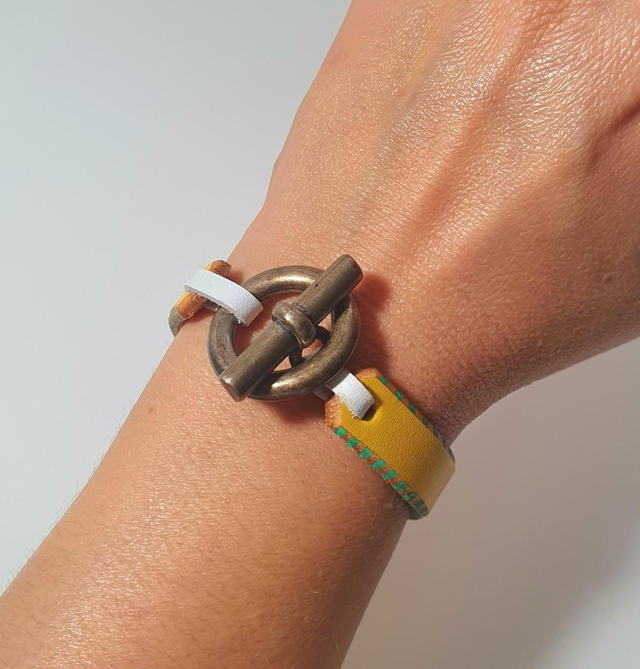 le cuir est epais et donc se tiens parfaitement au poignet.